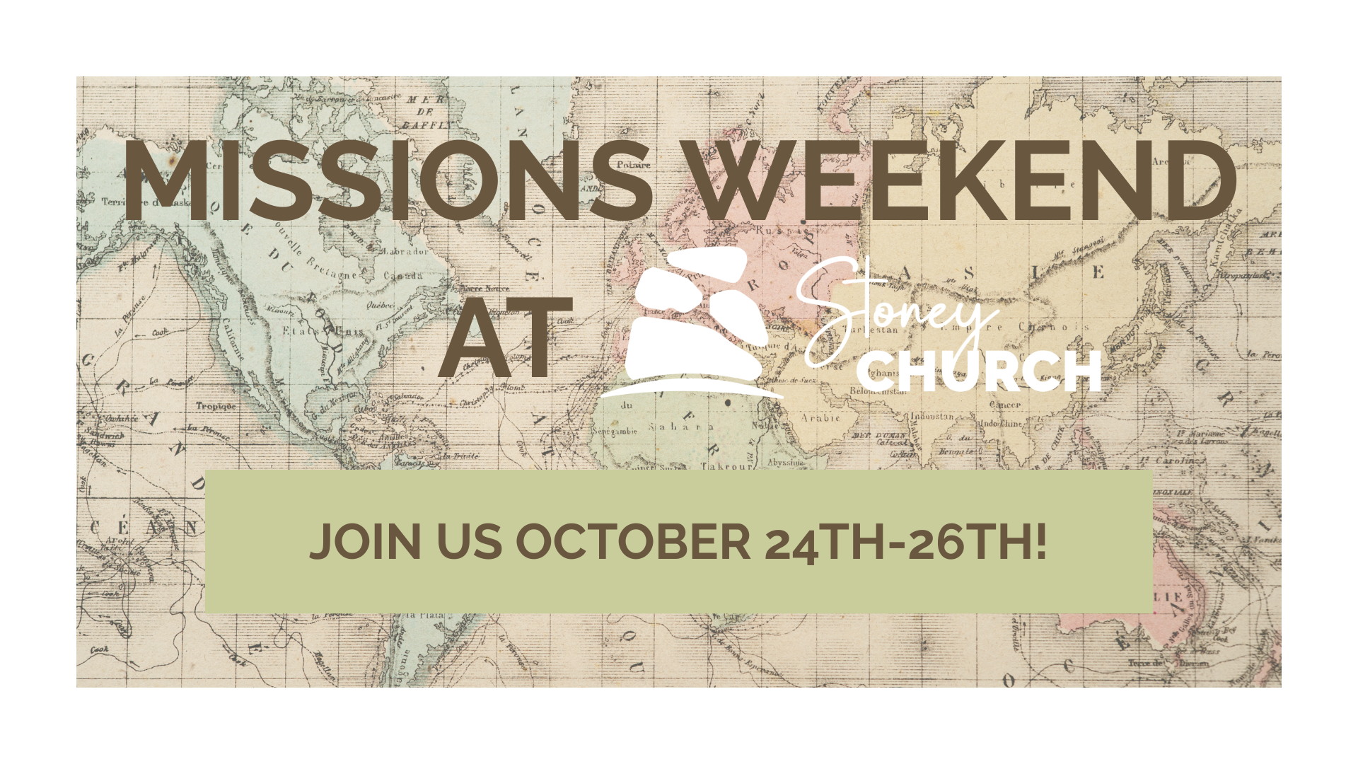 We celebrate Missions every October and this is your time to learn all about the missionaries at Stoney and how you can come alongside them. We have events all weekend that we’d love you to join us with! Friday is our Steak Dinner, Saturday Trunk or Treat, and Special Speaker Sunday!